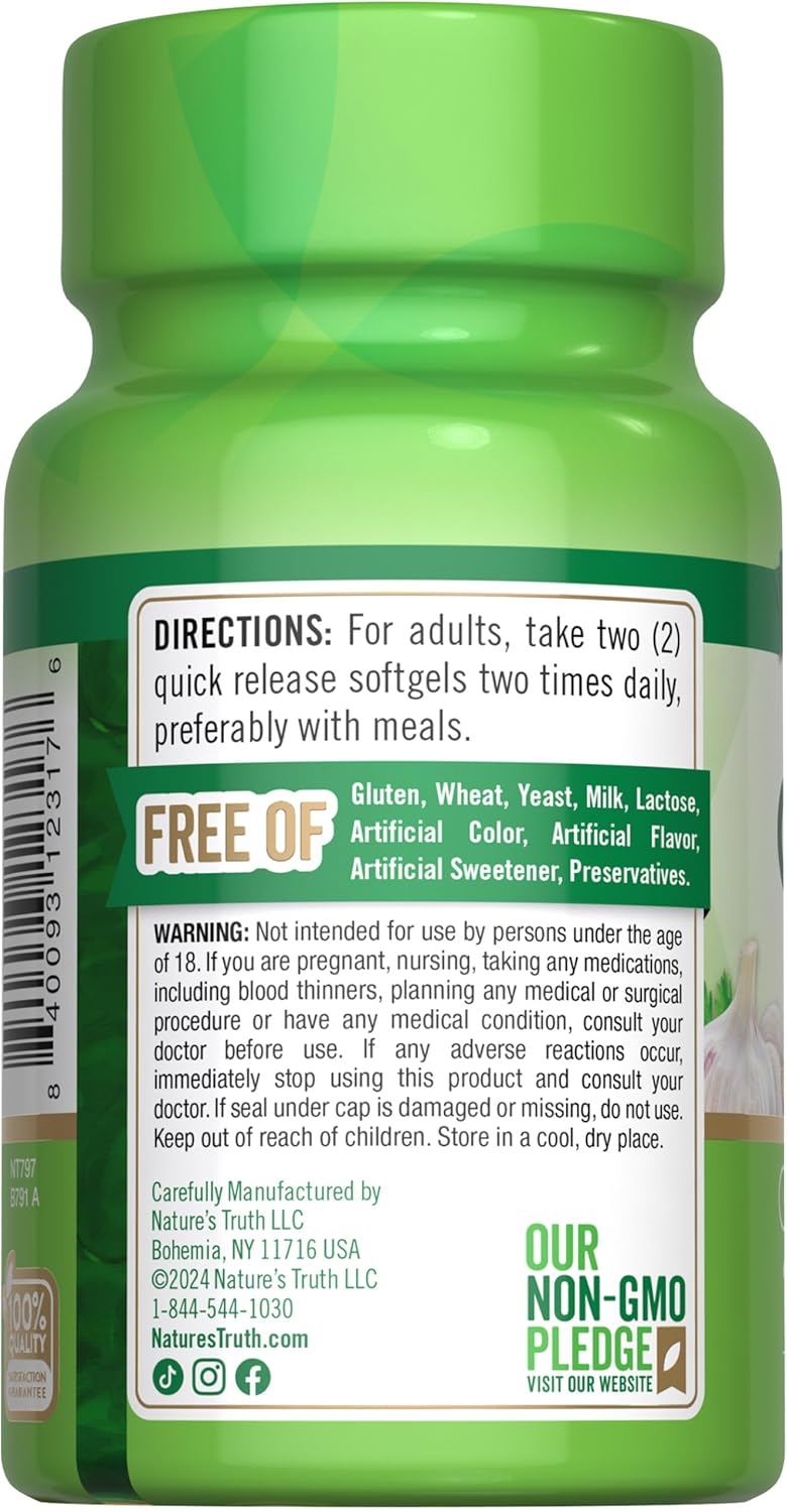 Our mission at Nature’s Truth is to meet your wellness needs with products that go above and beyond. Nature’s Truth provides supplements in various delivery forms, such as capsules, softgels, chewables, tablets, powders, liquids, and gummies to suit every preference. Our Odorless Garlic is non-GMO and free of gluten, wheat, yeast, milk, lactose, artificial color, artificial flavor, artificial sweetener, and preservatives.