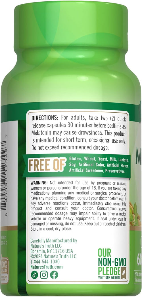 Nuestra misión en Nature’s Truth es satisfacer tus necesidades de bienestar con productos que van más allá. Nature’s Truth ofrece suplementos en varias formas de presentación, como cápsulas, softgels, masticables, tabletas, polvos, líquidos y gomitas para adaptarse a cada preferencia. Nuestra Melatonina más Ashwagandha no contiene OGM y está libre de gluten, trigo, levadura, leche, lactosa, soja, colorante artificial, sabor artificial, edulcorante artificial y conservantes.