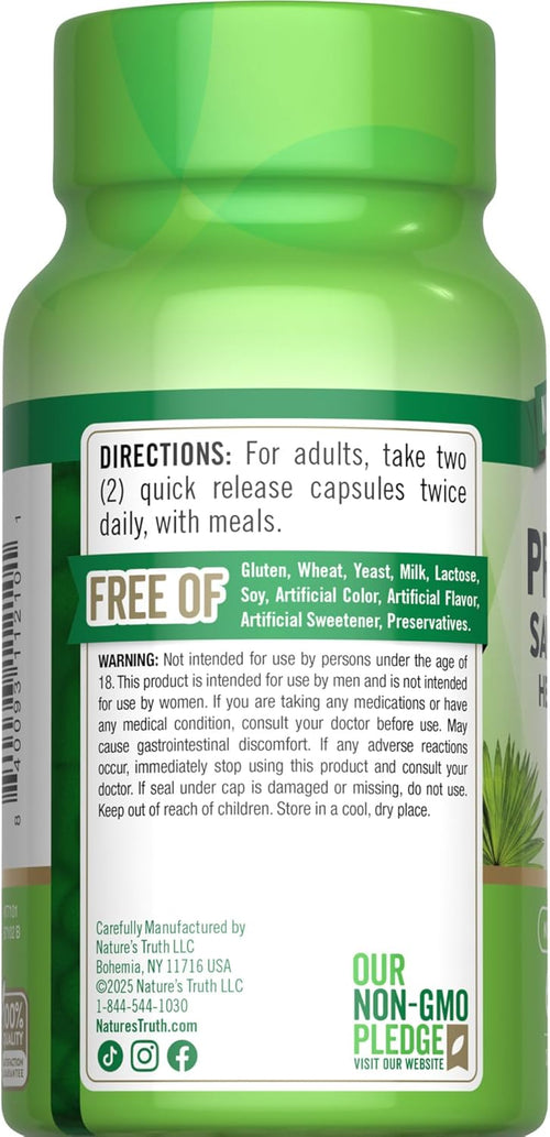 Nature's Truth ahora ofrece una fórmula de máximo apoyo con las 3 de estas hierbas dinámicas!* Nuestro avanzado Complejo Herbal Prostaid Extra-Fuerte está repleto de un espectro equilibrado de hierbas con potentes propiedades vegetales. Nuestra fórmula única ofrece una combinación de saw palmetto, pygeum y licopeno en cápsulas de liberación rápida de rápida absorción. Nature's Truth es la marca definitiva para suplementos herbales y ingredientes reales de fuentes confiables. ¡Agrega esta fórmula de élite a tu rutina hoy mismo!