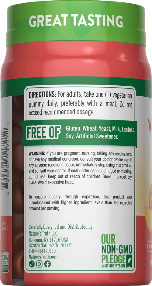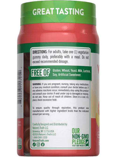 Notre mission chez Nature's Truth est de répondre à vos besoins en matière de bien-être avec des produits qui vont au-delà. Nature's Truth propose des compléments sous diverses formes, comme capsules, gélules, à mâcher, comprimés, poudres, liquides et gélifiés, pour convenir à toutes les préférences. Notre vitamine D3 est végétarienne, non OGM, sans gluten, blé, levure, lait, lactose, soja, et édulcorant artificiel.