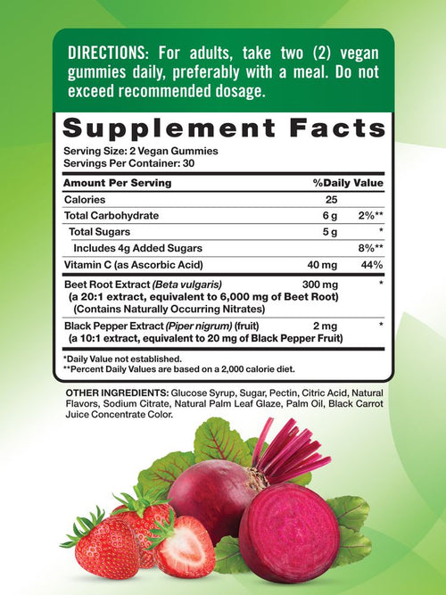 La comodità di queste gomme alla Radice di Barbabietola è imbattibile! Ogni dose di questa formula vegana fornisce l'equivalente di 6.000 mg di barbabietola, oltre alla vitamina C e all'estratto di pepe nero per un supporto aggiuntivo.** Queste gomme al gusto di fragola sono una meravigliosa alternativa per chi non ama le pillole.