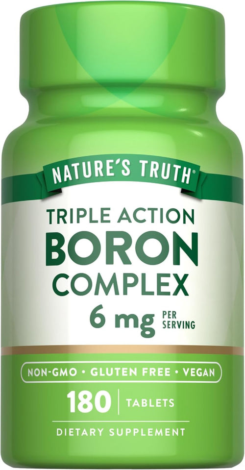 Le compresse Boron Complex di Nature's Truth possono essere una parte preziosa della tua routine quotidiana, fornendo 6 mg per porzione in una formula a tripla azione come citrato di boro, glicinato di boro e aspartato di boro.
