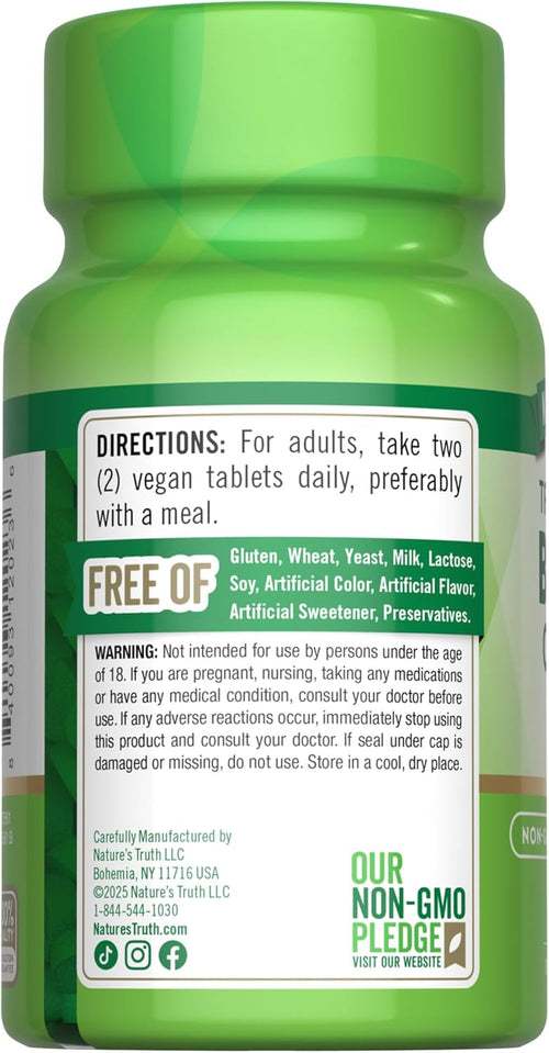 Le compresse Boron Complex di Nature's Truth sono un modo comodo per chi non consuma regolarmente molta frutta e verdura di integrare la propria dieta. Ogni porzione di due compresse al giorno è facile da assumere ed è adatta a stili di vita vegani.