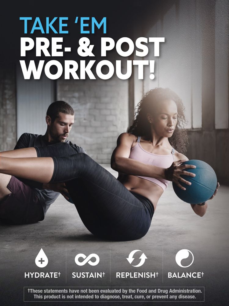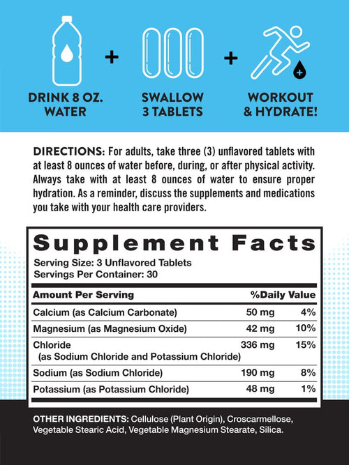Le nostre Compresse di Idratazione Elettrolitica† sono un modo senza zucchero e vegano per ricevere importanti elettroliti e minerali. Ogni dose fornisce i principali elettroliti calcio, magnesio, cloruro, sodio e potassio. Queste compresse sono prive di aroma, quindi puoi facilmente incorporare i minerali essenziali persi attraverso il sudore nella tua routine. Prendere sempre con almeno otto once di acqua per garantire una corretta idratazione.