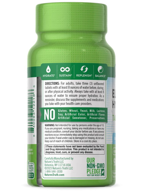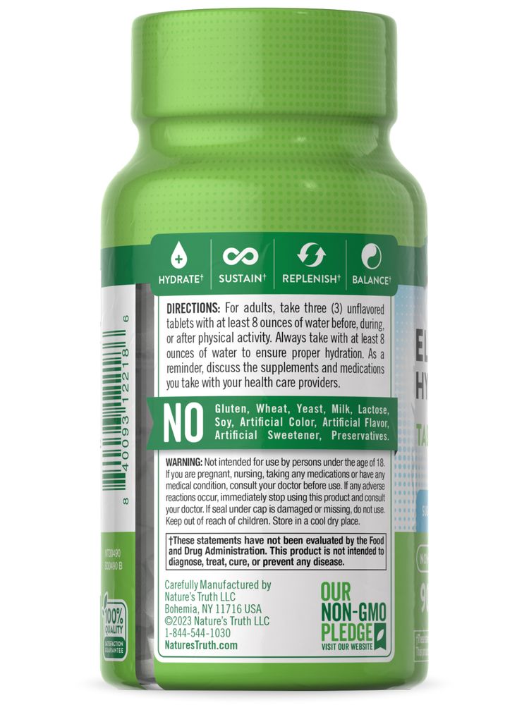 La nostra missione in Nature’s Truth è soddisfare le tue esigenze di benessere con prodotti che vanno oltre. Nature’s Truth fornisce integratori in varie forme di somministrazione, come capsule, softgel, masticabili, compresse, polveri, liquidi e gomme per soddisfare ogni esigenza. La nostra Idratazione Elettrolitica è vegana, non OGM e priva di glutine, grano, lievito, latte, lattosio, soia, coloranti artificiali, aromi artificiali, dolcificanti artificiali e conservanti.
