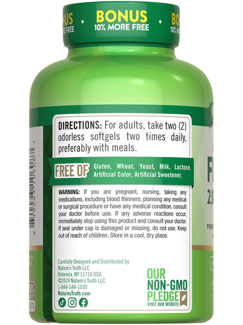 La nostra missione presso Nature’s Truth è soddisfare le tue esigenze di benessere con prodotti che vanno oltre. Nature’s Truth fornisce integratori in varie forme di somministrazione, come capsule, softgel, masticabili, compresse, polveri, liquidi e gomme per soddisfare ogni preferenza. Il nostro Olio di Pesce è non-OGM e prodotto senza glutine, grano, lievito, latte, lattosio, colori artificiali e dolcificanti artificiali.