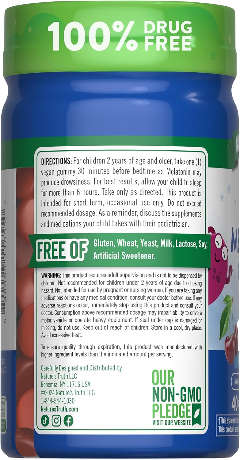 La nostra missione in Nature’s Truth è soddisfare le tue esigenze di benessere con prodotti che vanno oltre le aspettative. Nature’s Truth offre integratori in varie forme, come capsule, softgel, masticabili, compresse, polveri, liquidi e gommosi per soddisfare ogni preferenza. La nostra Melatonina per Bambini è vegana, non OGM e priva di glutine, grano, lievito, latte, lattosio, soia e dolcificanti artificiali.