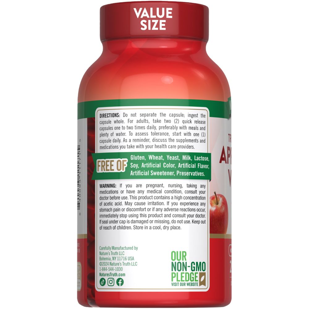 Our mission at Nature’s Truth is to meet your wellness needs with products that go above and beyond. Nature’s Truth provides supplements in various delivery forms, such as capsules, softgels, chewables, tablets, powders, liquids, and gummies to suit every preference. Our Apple Cider Vinegar is non-GMO and free of gluten, wheat, yeast, milk, lactose, soy, artificial color, artificial flavor, artificial sweetener, and preservatives.