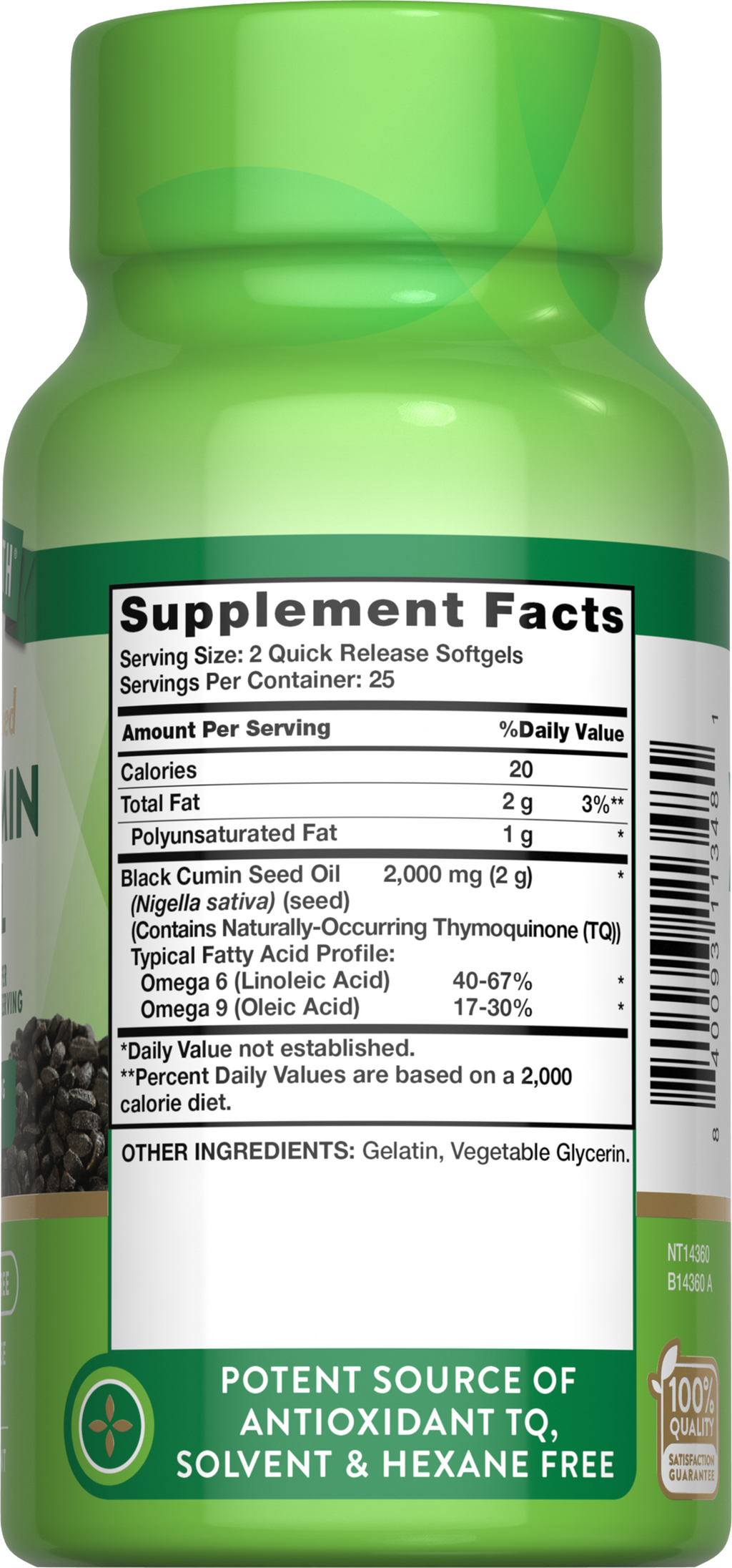 Our mission at Nature’s Truth is to meet your wellness needs with products that go above and beyond. Nature’s Truth provides supplements in various delivery forms, such as capsules, softgels, chewables, tablets, powders, liquids, and gummies to suit every preference. Our Black Cumin Seed Oil is non-GMO and free of gluten, wheat, yeast, milk, lactose, soy, artificial color, artificial flavor, artificial sweetener, and preservatives.