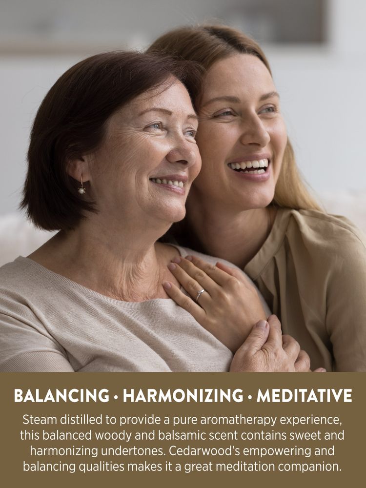 Steam distilled to provide a pure aromatherapy experience, this balanced woody and balsamic scent contains sweet and harmonizing undertones. Cedarwood's empowering and balancing qualities makes it a great meditation companion.