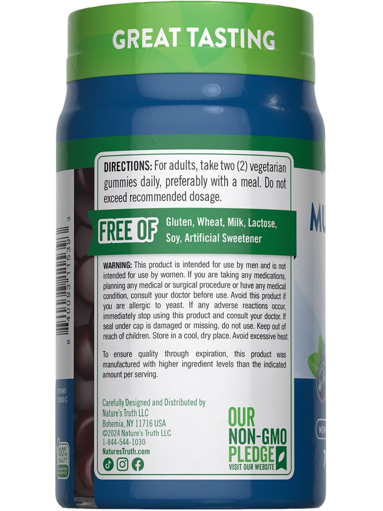 These Multivitamin Gummies are formulated just for men! Each serving delivers an array of vitamins and minerals in one formula. Plus, these vegetarian gummies are a delicious blueberry flavor and are a wonderful alternative for those who dislike or have trouble swallowing pills.