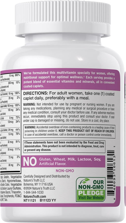 Our mission at Nature’s Truth is to meet your wellness needs with products that go above and beyond. Nature’s Truth provides supplements in various delivery forms, such as capsules, softgels, chewables, tablets, powders, liquids, and gummies to suit every preference. Our Women’s ABC Complete is non-GMO and free of gluten, wheat, milk, lactose, and soy.