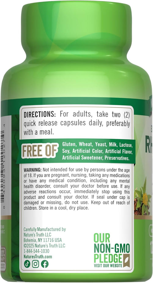 Cápsulas de Liberação Rápida de Raiz de Rhodiola da Nature’s Truth